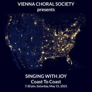 7:30 pm, Saturday, May 15, 2021, for SINGING WITH JOY, COAST TO COAST.