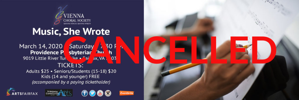 Unfortunately, world events have caught up with us, and given the current concerns regarding COVID-19, we are canceling this weekend’s concert, “Music, She Wrote.”